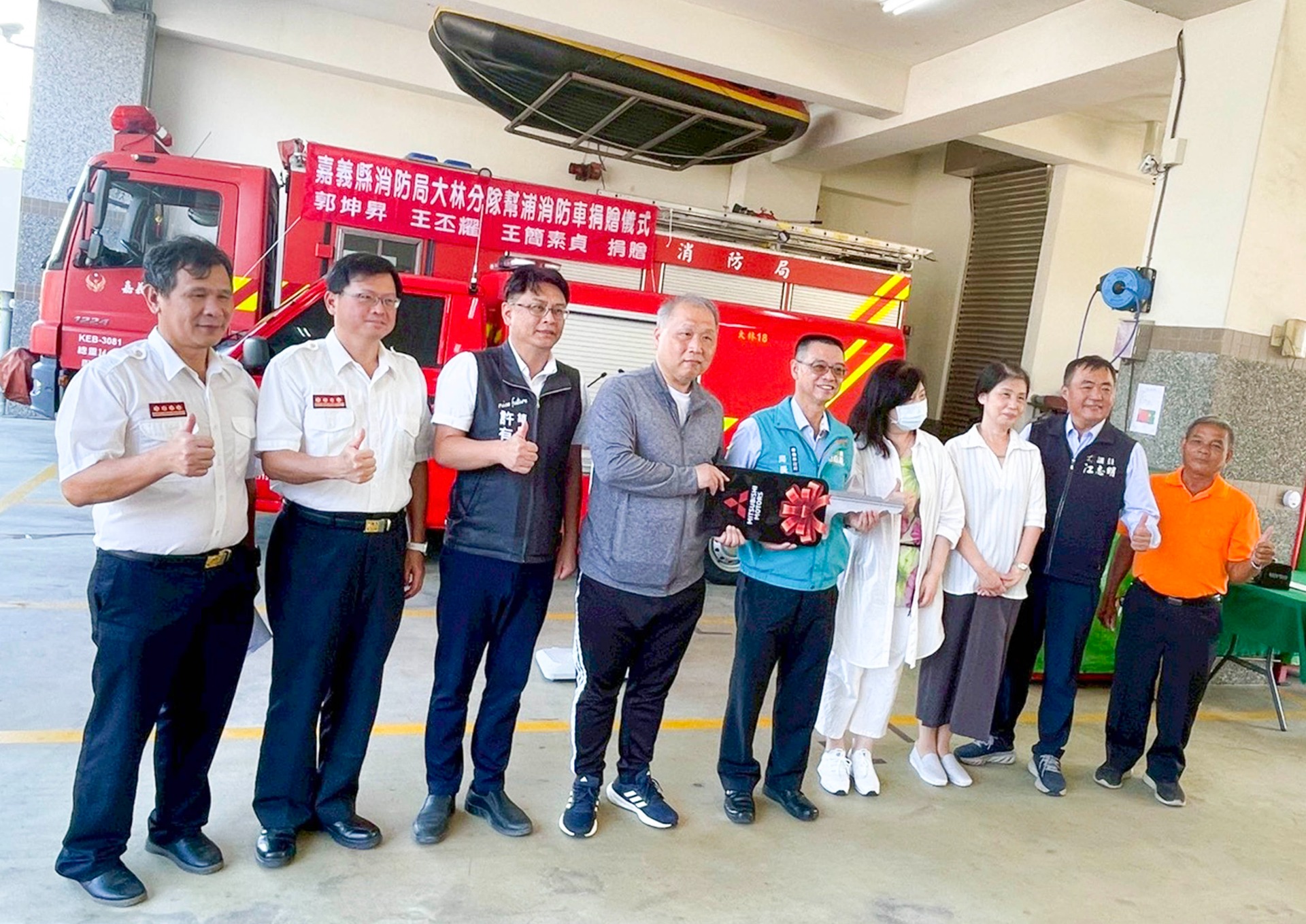 臺南市政府消防局113年12月30日上午9時,於佳里消防分隊舉行幫浦消防車捐贈儀式,由白茂裕先生與謝秀雲女士出席代表捐贈,由臺南市市長黃偉哲代表受贈並回贈感謝獎座,以感謝此善行義舉造福地方和人群。